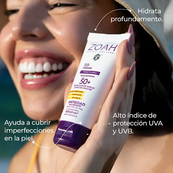 Nuestra BB Cream ayuda a mantener tu piel hidratada en todo momento, cubre imperfecciones y marcas, unifica y matiza el tono de tu piel, además protege tu piel de los rayos solares. Puedes usarla como base para un maquillaje sencillo.